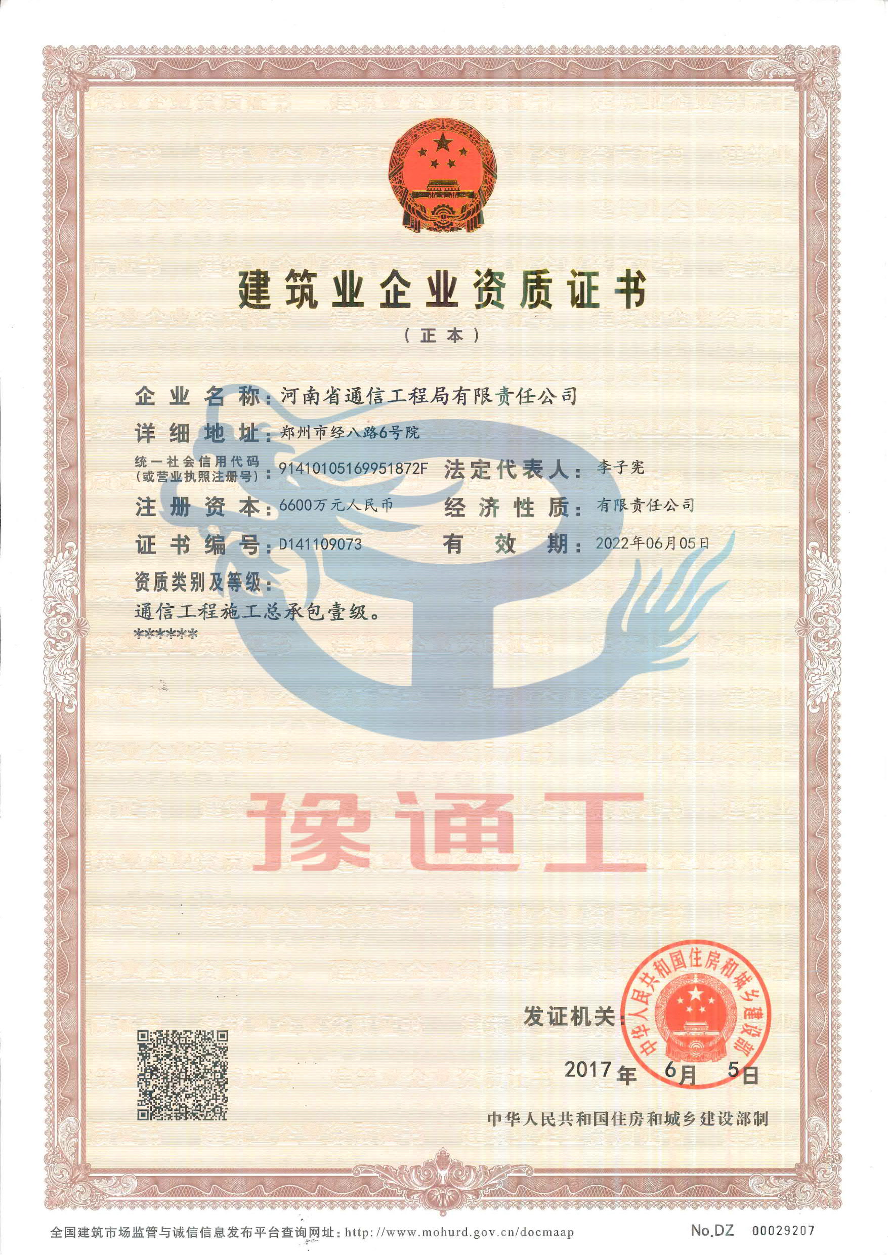 通信施工領(lǐng)域信用企業(yè)AAA級(jí)