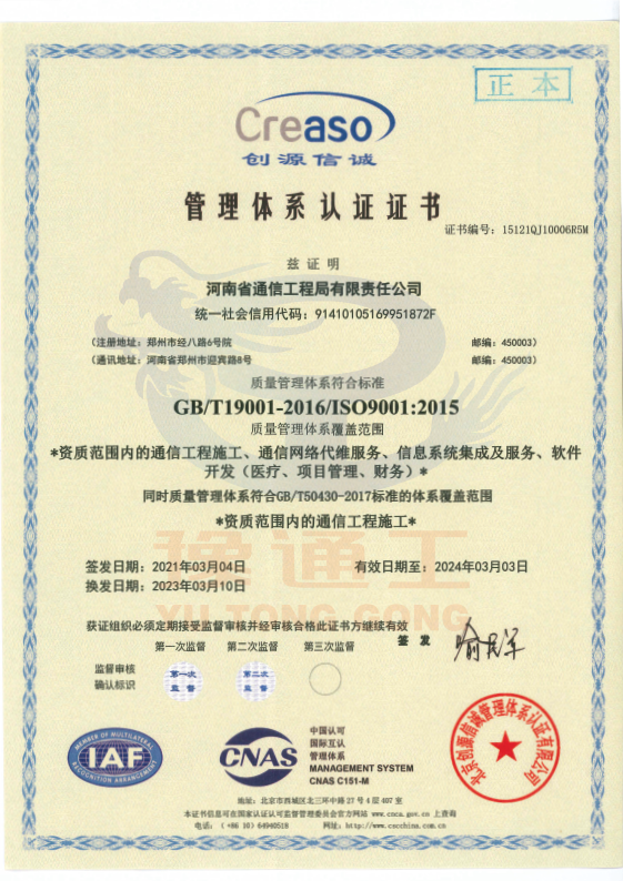 管理體系認(rèn)證證書(shū)(質(zhì)量管理)