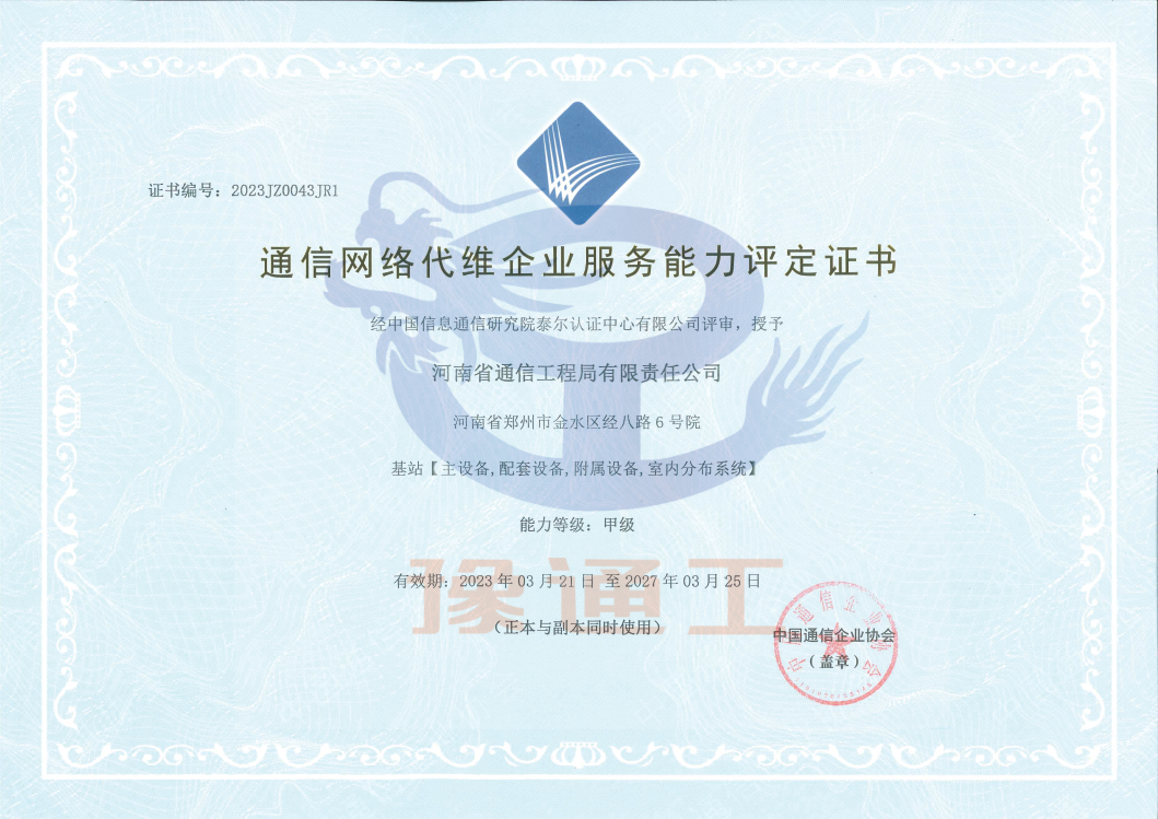 通信網(wǎng)絡(luò)代維基站專(zhuān)業(yè)甲級(jí)