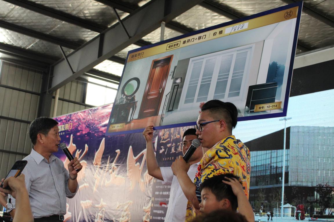 緊接其后的現(xiàn)場(chǎng)廠購(gòu)簽售,前所未有的折扣力度,吸引上千人就坐,賓客満席。期間固友木門(mén)總裁孫天樂(lè)先生現(xiàn)場(chǎng)承諾保價(jià),并揭開(kāi)總裁特批零利潤(rùn)套餐的限時(shí)特惠價(jià)格,三套門(mén)驚爆價(jià)9888!將活動(dòng)帶入高潮,火爆全場(chǎng)。